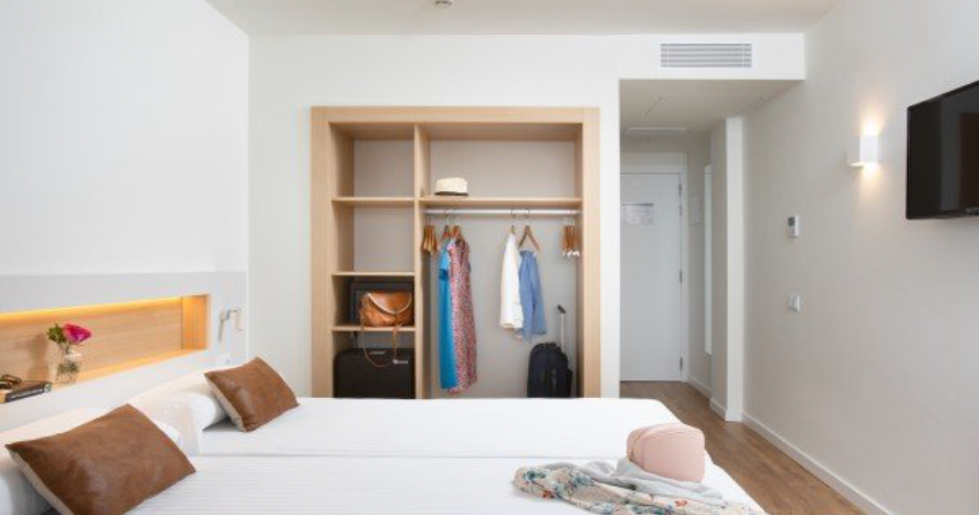 Die 126 renovierten Zimmer sind mit Bad/WC, Klimaanlage, Balkon, TV, Safe und WLAN ausgestattet. Alle Zimmer bieten eine seitliche oder frontale Sicht (auf Anfrage) auf das Meer und auf die Bucht von Rosas.
